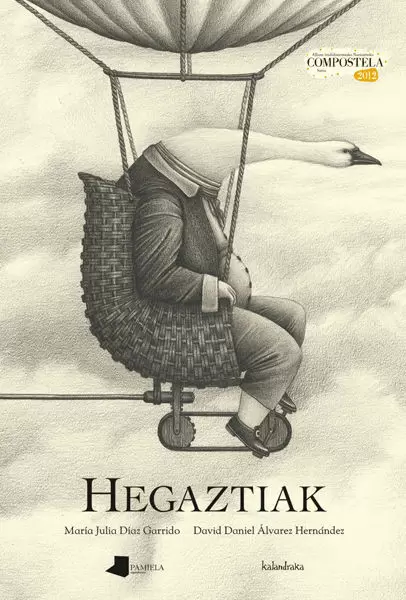 Album Irudidunen "Compostela" Nazioarteko V. Saria irabazi duen liburua -maisulana teknika artistikoaren ikuspuntutik- gizateriaren historiari buruzko metafora ederra da. Hegaztiek pertsonen nahi biziak irudikatzen dituzte: gaizto bihurtzen diren asmo onak. Dena dela, itxaropenaren distirak argitzen du zerumuga...
