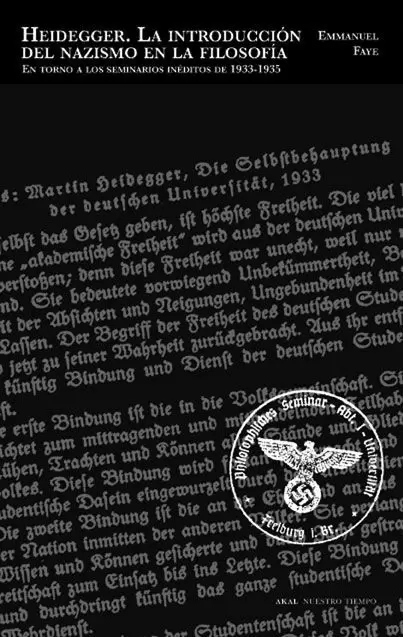 Numerosos documentos inéditos o no traducidos hasta el momento demuestran hasta qué punto Heidegger se consagró a introducir los fundamentos del nazismo en la filosofía y en su propia enseñanza. Por ejemplo, en su seminario hitleriano del invierno de 1933-1934, Heidegger identificó al pueblo con la comunidad de la raza e intentó constituir una nueva nobleza para el Tercer Reich, exaltando el eros del pueblo por su Führer. Además, y al contrario de lo que se ha venido sosteniendo hasta ahora, el nazismo de Heidegger no sólo no se atenuó después de 1935 sino que se radicalizó. así, en junio de 1940, Heidegger definió la motorización de la Wehrmacht como un «acto metafísico» y, en 1941, calificó la selección racial como «metafísicamente necesaria». Por otro lado, tampoco conviene olvidar que tras la derrota del nazismo, las ideas heideggerianas sobre el nacionalsocialismo y los campos de exterminio alimentaron discursos revisionistas y negacionistas. Combinando la reflexión filosófica con la investigación histórica, Emmanuel Faye muestra cómo las relaciones de Heidegger con el nacionalsocialismo no pueden reducirse al desvarío pasajero de un hombre cuya obra merece admiración y respeto. Participando directamente en la elaboración de la doctrina hitleriana y postulándose como «guía espiritual» del nazismo, Heidegger no sólo no enriqueció la filosofía sino que la utilizó para destruir la posibilidad misma de todo pensamiento, de todo humanismo. Por este motivo, la tarea más urgente del filósofo debe ser impedir esa empresa de destrucción.