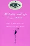 Puede decirse sin temor que Historia del ojo es la obra maestra de la literatura erótica. En ella confluyen, por un lado, la mejor prosa en clave surrealista de este gran novelista, ensayista y poeta francés y, por otro, la esencia de su obsesiva preocupación por el sexo, la muerte y la fe -su fe- que configura, en realidad, gran parte de su obra. Partiendo de un proceso creativo muy querido de los surrealistas, relaciona, en una trama anecdótica de hecho muy simple, las imágenes que de un modo inconsciente y automático evocan el ojo, el huevo, el sol, los genitales del toro, con toda su carga de connotaciones atávicas, y nos las «revela» en su contenido erótico más revulsivo. El personaje de la joven Simone, que transgrede en todos sus actos cualquier norma de comportamiento sexual admitido, moral y conscientemente, es la encarnación, por una parte, del Deseo inconsciente y, por otra, del Pecado, de lo Prohibido y por ende del Placer, que a su vez, por ser fruto del mal, no es más que portador del máximo castigo : la muerte. Así pues, el goce en su plenitud sabe siempre a muerte… Es una satisfacción para nosotros acompañar la edición española de esta pequeña gran obra de Bataille con un extenso y revelador ensayo de Mario Vargas Llosa, titulado El placer glacial, y de las espléndidas y revulsivas ilustraciones que Hans Bellmer, uno de las más destacados artistas plásticos del movimiento surrealista, realizó en 1944 para un lujosa edición reducida de Historia del ojo.
