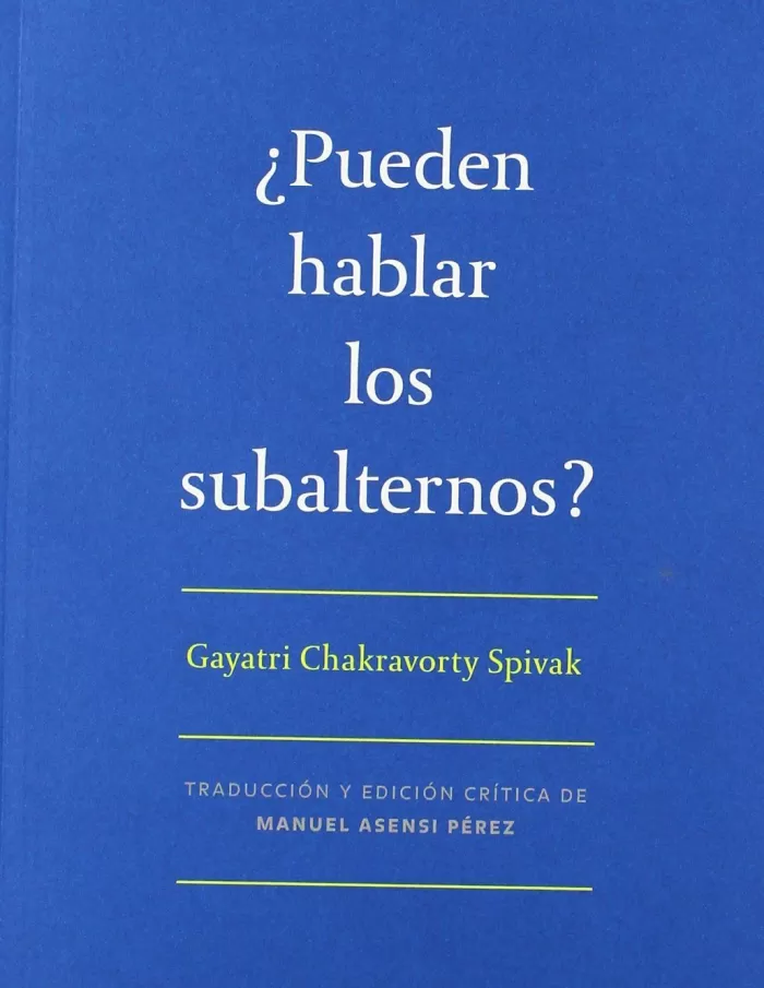 Este libro recoge la traducción de uno de los textos que marcó un antes y un después dentro de la crítica poscolonial y, en general, dentro de la crítica contemporánea: Can the Subaltern Speak? de Gayatri Chakravorty Spivak. Nadie que se interese por los problemas del género, la raza o la clase puede permanecer ajeno a las provocativas tesis que presenta Spivak en este texto, el cual dio lugar a uno de los debates más encendidos que ha llegado hasta nuestros días. Manuel Asensi Pérez ha realizado la traducción de este texto y lo ha acompañado de un aparato crítico de notas que pretenden hacer accesible un discurso, a veces críptico, al lector en general. Al mismo tiempo, ha escrito un prólogo que tiene un doble fin: clarificar las ideas del ensayo de Spivak y prolongar el debate más allá de los límites de una disciplina humanística.