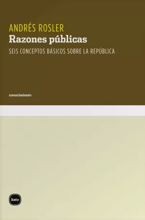En Razones públicas, Andrés Rosler traza un retrato histórico-conceptual del republicanismo que desmiente por completo la imagen con que se lo suele asociar: la de un discurso anticuado, conservador, que moraliza lo político, obsesionado por limitar el poder e incapaz de hacer frente a sus enemigos. A contrapelo de esa visión, el autor desarrolla su argumentación a partir del análisis de cinco aspectos republicanos claves: "la libertad como no dominación, la virtud como soporte motivador y epistémico de la participación cívica, el debate como el elemento constitutivo de la política, la ley como la otra cara de la libertad y la patria como el espacio particularista aunque estrictamente institucional de la república"; y de su contracara, el cesarismo, que surge "cuando la libertad cede su lugar a la dominación, la virtud a la corrupción, el debate a la unanimidad, la ley al capricho de los gobernantes y la patria al chauvinismo".