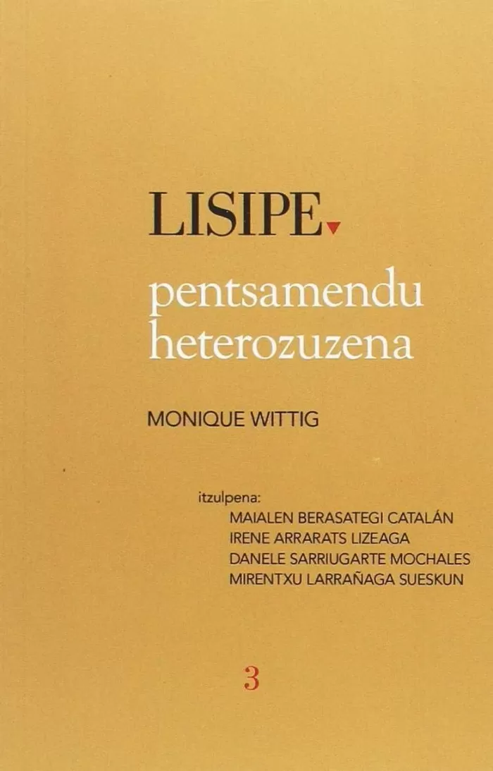 Pentsamendu heterozuzena, Monique Wittig: Bilduma honetan argitaratu diren lehen bi liburuen aldean, badu hirugarren honek beste zera bat agerikoa: ez zela jatorrian euskaraz sortu. Ingelesez kaleratu zuen Monique Wittigek estreina 1980an, eta lau itzultzailek ekarri dute gurera orain, harrezkero hogeita hamabost urtetik gora joan diren honetan.